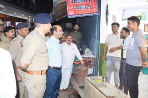 डीएम एवं एसपी द्वारा शहर के भंगवा चुंगी से चौक घंटाघर, सराफा मार्केट, पंजाबी मार्केट आदि चौराहों का पैदल भ्रमण किया