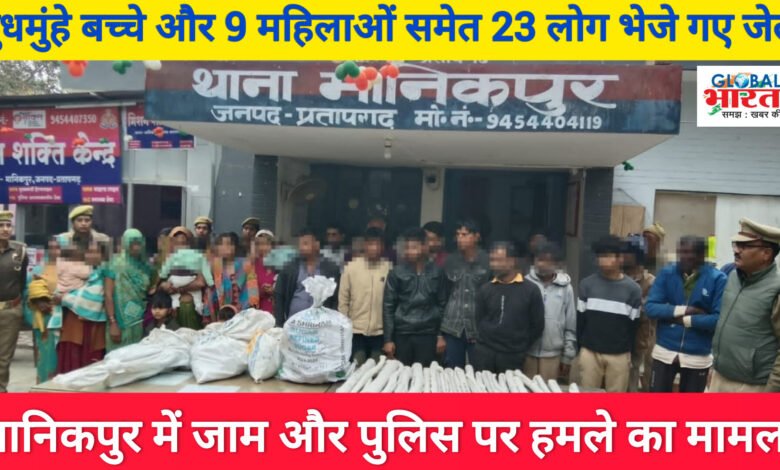 प्रतापगढ़, थाना मानिकपुर क्षेत्र में जहरीला पदार्थ खिला कर हत्या करने का आरोप लगाकर ग्रामीणों जिस तरह का आक्रोश जताया वो एक बड़े मामले को जन्म दे दिया, जिसमें आज 9 महिलाओं समेत 23 लोगों को जेल की हवा खानी पड़ गई। पुलिस का कहना है कि युवक की मौत के बाद परिजनों और ग्रामीणों द्वारा शव को लखनऊ-प्रयागराज राष्ट्रीय राजमार्ग पर रखकर आवागमन बाधित किया गया। पुलिस ने स्थिति को संभालने का शांतिपूर्ण प्रयास किया, लेकिन भीड़ ने उग्र होकर ईंट-पत्थर, लाठी-डंडों और लोहे की सरिया से पुलिस बल पर हमला कर दिया। सरकारी वाहन को भी क्षतिग्रस्त किया गया और इस हमले में कुछ पुलिसकर्मी घायल हो गए। पुलिस ने इस मामले में बड़ी कार्रवाई करते हुए 23 अभियुक्तों को गिरफ्तार किया है। अभियुक्तों के पास से 23 लकड़ी के डंडे, 2 लोहे की सरिया और 1 सीयूजी मोबाइल बरामद किया गया है।